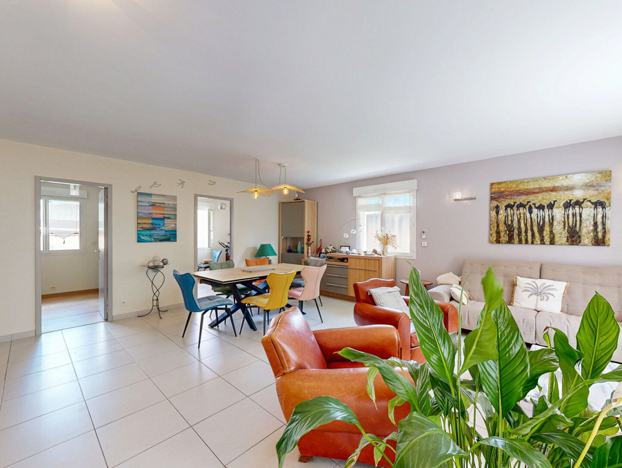 Exclusivité et visite virtuelle immersive 3D disponible sur demande.Au calme et à proximité immédiate de toutes les commodités à pied, venez déposer vos valises dans cette villa individuelle plain-pied de type 4 bis d'une superficie de 109 m² (95 m² et véranda 14 m²) sur parcelle arborée 510 m². La villa a été entièrement rénovée et est composée d'une véranda lumineuse AKENA, d'un espace séjour/salle à manger de plus de 30 m², d'une cuisine indépendante équipée et aménagée (11 m²) donnant accès à une buanderie, un bureau et un garage (le tout isolé). L'espace nuit comprend deux chambres, un bureau, une salle d'eau et un W.C séparé.