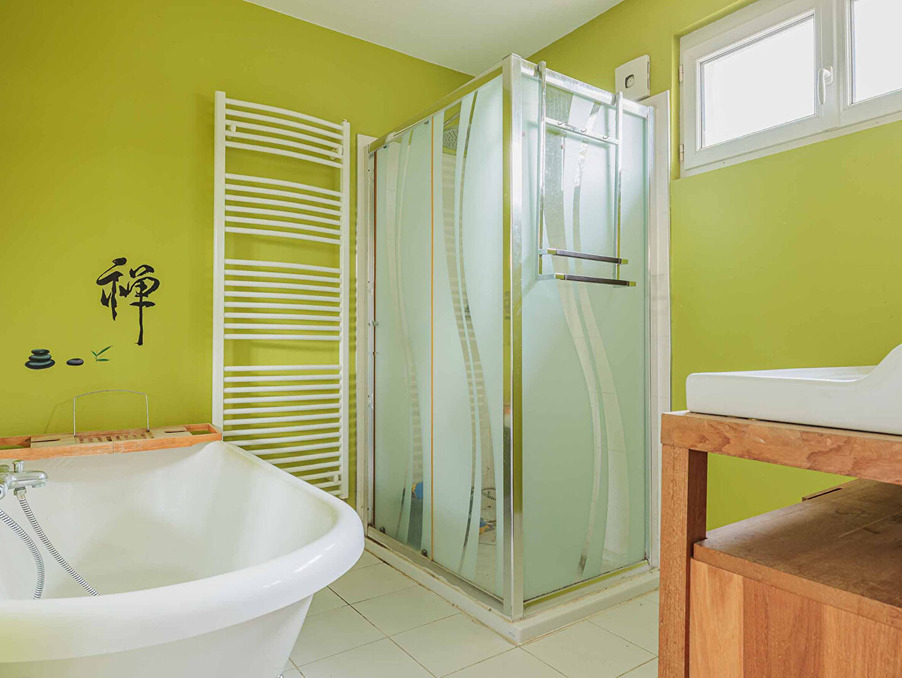 A l'étage, un palier dessert quatre chambres (18,25 m², 9,30 m², 9,25 m² et 12,41 m²), une grande salle d'eau, un WC ainsi qu'une salle de bains.