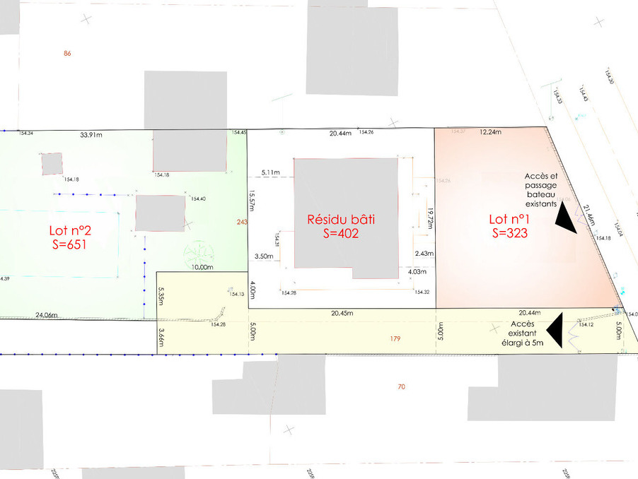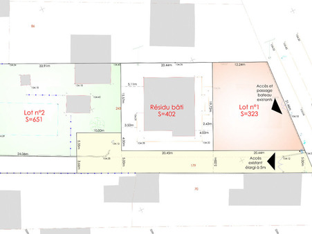 Lot 2 - Terrain à bâtir non viabilisé (en troisième ligne) d'une superficie de 651 m² en zone UD. Clôturé sur deux 3 côtés, piscine et bâtis existants. Réseaux à l'entrée du chemin d'accès (env. 50 mètres). Emprise au sol 25 % soit 162.75 m². (5.93 % d'honoraires TTC à la charge de l'acquéreur.)Biens similaires